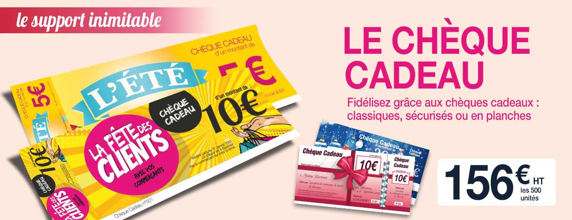 Le chèque cadeau sécurisé : c est le plus difficile à falsifier avec sa bande hologramme façon billet de banque et sa numérotation. Ce système limite considérablement vos risques de fraude. Livré en planche de 3 billets avec micro-perforation pour une découpe facile, il est entièrement personnalisable à vos couleurs, vos textes, vos montants. Il est...