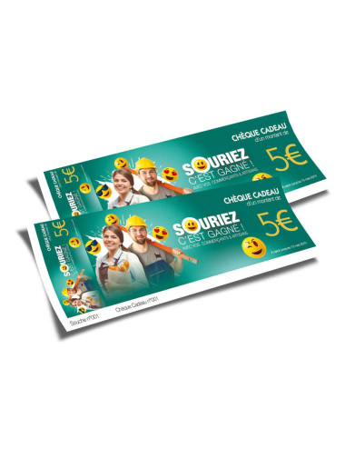 Le chèque cadeau sécurisé : c est le plus difficile à falsifier avec sa bande hologramme façon billet de banque et sa numérotation. Ce système limite considérablement vos risques de fraude. Livré en planche de 3 billets avec micro-perforation pour une découpe facile, il est entièrement personnalisable à vos couleurs, vos textes, vos montants. Il est...